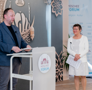 Direktor des Moscheeforums Murat Sahinarslan und Künstlerin Liselotte Bombitzki