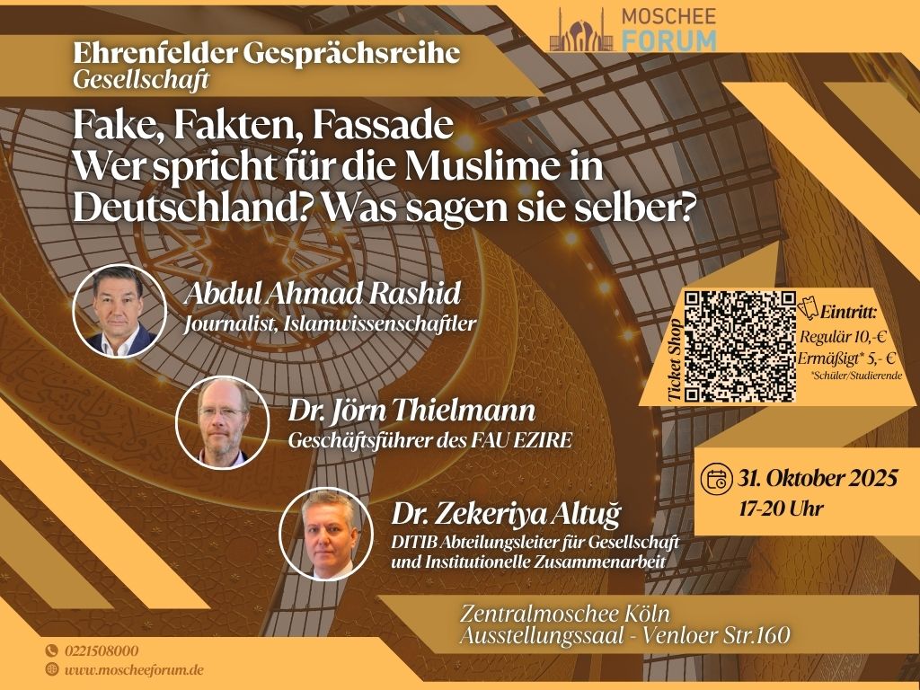 Mit der neuen Ehrenfelder Gesprächsreihe – Gesellschaft eröffnet das MoscheeForum einen Raum für fundierten, auch kontroversen Austausch an der Schnittstelle von Religion und Gesellschaft. Pro Ausgabe treffen wissenschaftliche, religiöse und zivilgesellschaftliche Perspektiven aufeinander – stets mit einer deutlich eingebrachten muslimischen Perspektive durch das MoscheeForum. Ziel ist es, komplexe Themen jenseits von Schlagworten differenziert zu beleuchten.